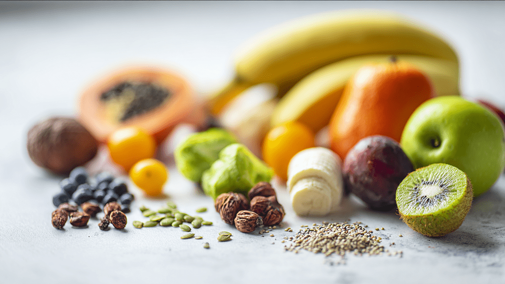 - Сочетайте разные источники. Используйте растворимую, нерастворимую клетчатку: свежие овощи, фрукты, цельнозерновые, орехи, отруби. Это создаёт условия для разнообразного микробиома.